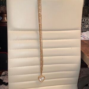 Charming gold heart necklace with gems . Can be wore as a double necklace or as an extra long single. Adds elegance to any look. Will need a new battery. Comes with jewelry box. Thanks for looking and have a great day.