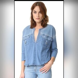 Free People Women's 'Ratio' Split Neck Cotton Top, Size XSmall - Blue