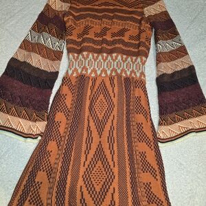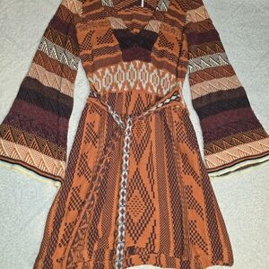 Bohemian Patterned Free People Dress in Red and Brown Geometric