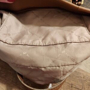 Chic and versatile tote with signature MK pattern. Features durable leather straps and gold-tone accents. Perfect for everyday use. 10x7x2