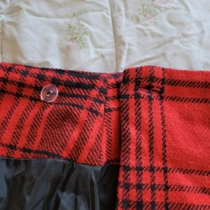 Styles: crimson check fire engine red blackwatch pattern wrap front pleated mini wool blend heritage iconic academia vibe chic silhouette rebellious punk academia chic minimalist tailored structured micro mini preppycore grunge glam 90s revival timeless staple statement piece bold color block winter warmer festive holiday essential
