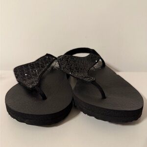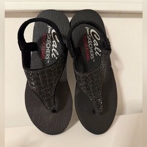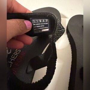 Skechers Size 8 Women's Meditation Sweet Rock Black Flip Flops