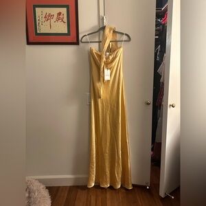NWT Reformation Oren Silk Dress in sunshine yellow, size XS. Brand new with tags