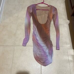 AFRM Maya Purple Mesh Motif Ruched Long Sleeve Mini Dress – Women’s Size XS