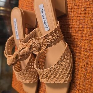 CHARLES DAVID BRAND WOMEN'S TAN SLIP-ON SUMMER SANDALS SIZE 8.5.