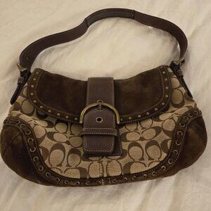 Vintage Coach Soho Signature C Canvas and Suede Shoulder Bag - Brown
