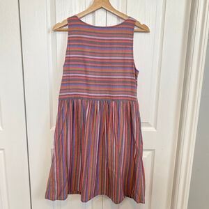 Madewell Striped Sun Dress XXS Pink Multicolor Pockets Tomato Girl Button-Front