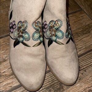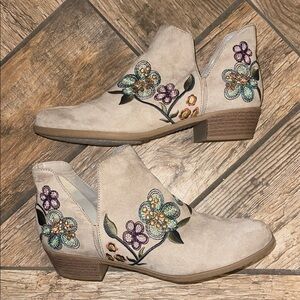 Embroidered Floral Ankle Boots 9 1/2
