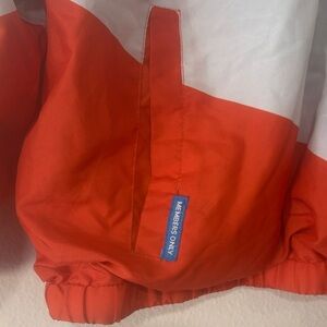 tricolor windbreaker featuring white, blue and orange hues. Designed for style and comfort, it's perfect for any adventure. Worn 2-3 times, Has no flaws! Will ship ASAP.