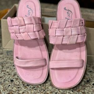 FREE PEOPLE Sandals River Pink Woven Leather Flats Sz 37