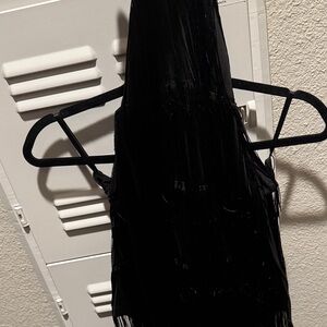 Black Fringe Halter Dress