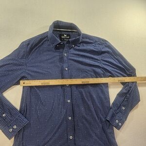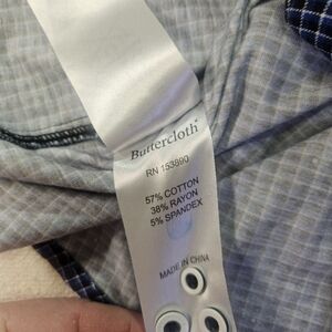Buttercloth men’s button-down shirt, size XL. Long sleeve, regular fit. Blue small check pattern. Excellent condition.
