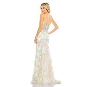 NWT Mac Duggal 2 Sequined Floral Corseted Sheer Sweetheart Long Cream Gown 68180