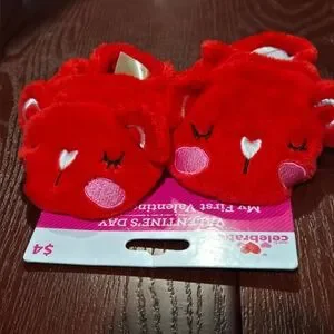 Baby slippers; no listed size beyond "infant"; id place them around 3/9 month, possibly larger. New and unused, on card.
