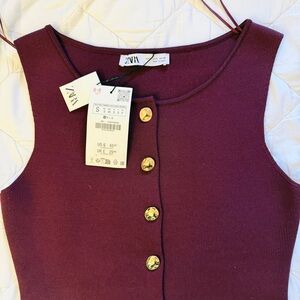 Brand new ZARA women knit button down vest top size S, burgundy