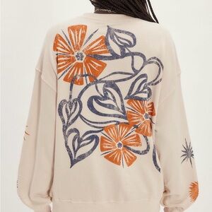NWT We The Free People (Daydreamer) Floral Stamp Cream Sweatshirt, size small
