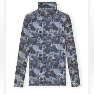 This long-sleeve top from GANNI is crafted of floral mesh in a fitted silhouette. A rolled turtleneck completes the look.