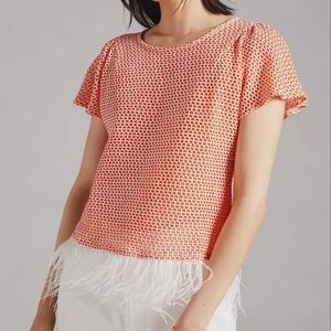 Anthropologie × Eva Franco Wispy Feather Boa Trim Mesh Knit Pullover Shirt LG