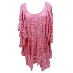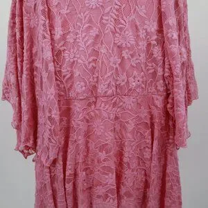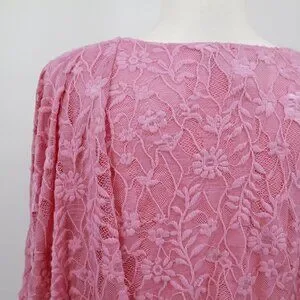 Elegant pink lace blouse. Flowy and stylish design. Perfect for any occasion.