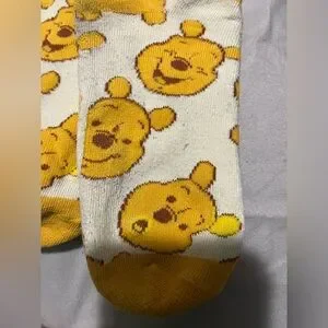 Enjoy comfort and style with these Winnie the Pooh themed women's socks. Featuring a playful design in gray and yellow, these socks are perfect for any fan.