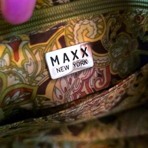 • Interior: Features main area, inner zip, 2 drop pockets with velcro closure, Signature MAXX NY Paisley nylon lining