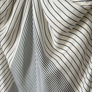 Elegant women's top featuring a stylish striped design in white and black. Perfect for any occasion.