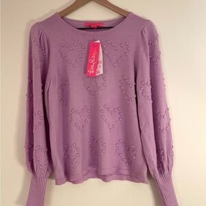 Kippa texture heart sweater in purple. Size large. Cotton blend. New with tags. Perfect for Valentine’s Day.