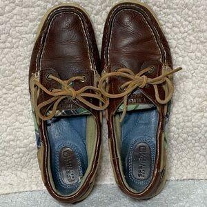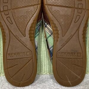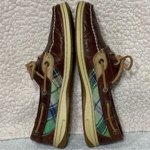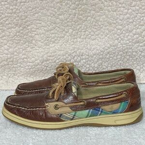 Sperry Top-Sider Womens Brown Leather Plaid Bluefish 2-Eye Boat Shoes. Color: Brown w/Plaid. Pre-owned - refer to pictures. No Rips or Tears. Smoke-Free.