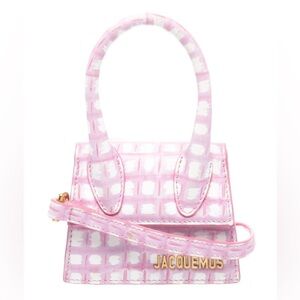 Jacquemus MINI Le Chiquito Leather Checkered Pink & White Bag Authentic