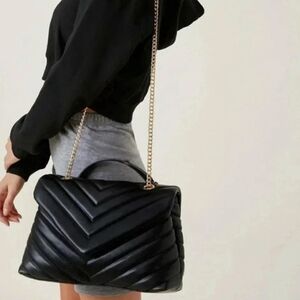 This elegant black quilted shoulder bag is perfect for any occasion. Its sleek design and versatile color make it a must-have accessory.