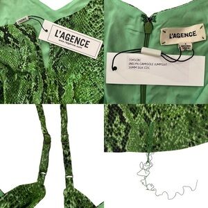 L'Agence Jaelyn Camisole Jumpsuit Silk Green Snakeskin Cropped Wide Leg 2