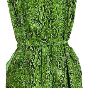 Features: Women's, Jaelyn, camisole jumpsuit, 16mm silk cdc, cropped wide leg, v neck, adjustable length spaghetti straps, zipper back and hook eye closure, belt, pockets, lined on top front, green snakeskin, python, all over print, evening, wedding, party, date night