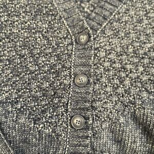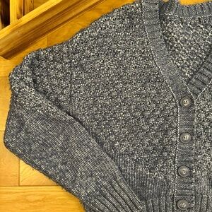 Stay cozy and stylish with this blue knit sweater. Perfect for layering in cooler weather.