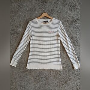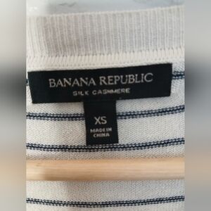Silk & Cashmere Striped Cream & Black Crew Neck Knit Sweater XS Banana Republic
