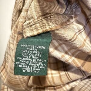 This Ralph Lauren women's XL plaid button-down shirt features a classic fit with a preppy grunge style. Made of comfortable cotton fabric with embroidered accents, it is suitable for travel, casual, and business occasions. The beige color and collared neckline give it a timeless look, while the long sleeves and casual sleeve type make it versatile for various seasons like winter, fall, and spring. Perfect for adding a touch of vintage-inspired charm to your wardrobe, this shirt is a wardrobe staple for any fashion-conscious woman.