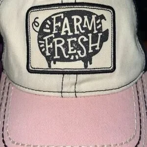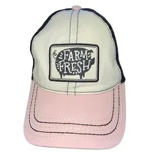 John Deere Farm Fresh Pig Black Pink Hat Mesh Trucker RARE USED Embroidered HTF