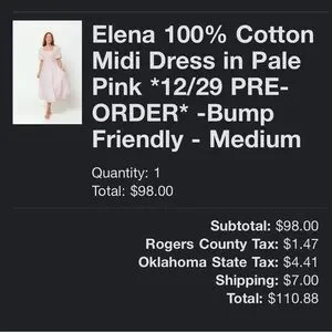 I am 5’2 and 170lbs. It’s the perfect shin length. Sweet bow detailing on the back. Plenty of room left for me to grow in at 26wks. I paid $110 with shipping. I’d like to get at least $85. I’ve attached invoice for full transparency.