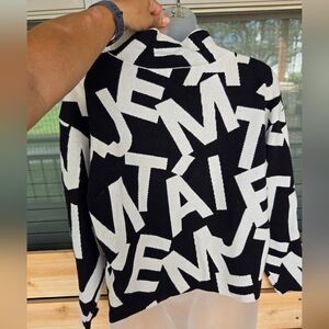 Je taime! Bold black and white design. Cozy neck style. Perfect for layering.