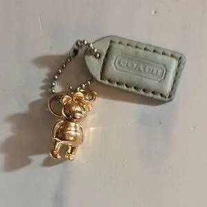 Elegant gold bear keychain by Coach. Ideal for bags or keys.