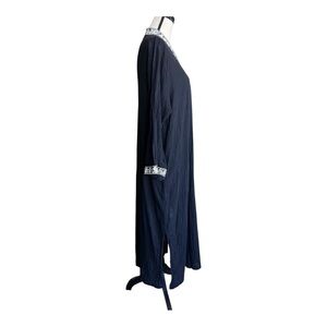 Oscar de la Renta Black Maxi Caftan Dress with White Accents Size L
