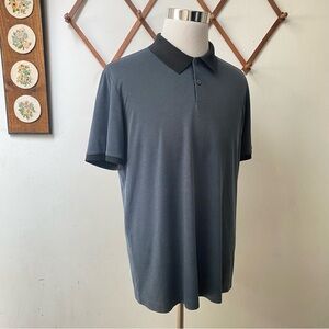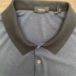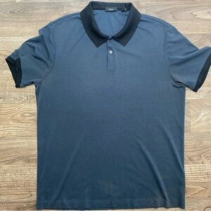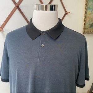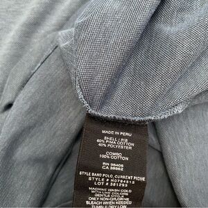 What’s cool? Great quality Pima cotton pique polo, lightweight comfortable fabric, blue with navy trim contrast collar and band cuffed sleeves, made in Peru