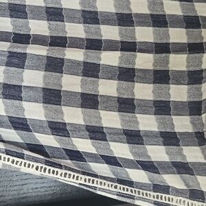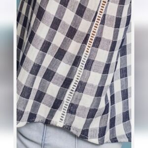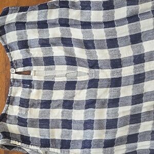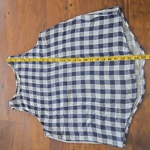 Cloth & Stone Anthropologie navy blue and white gingham checkered sleeveless blouse. Size medium. Excellent pre-owned condition. No flaws, stains, holes, or tears. Keyhole and button on back. Ladder stitch crochet down the side seams. The material is light and airy and doesn't have any stretch. So cute for spring, summer, and early fall!