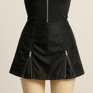 Channel full 2000s energy with this iconic Luella for Target black mini skirt — a true Y2K gem. Features a silky satin-like finish, working silver zippers on the front sides and back that open for adjustable slits, and a flirty slightly flared hem. Fully lined with nylon netting for that classic early-2000s shape.