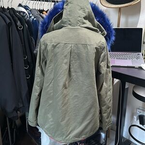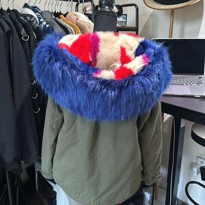 Belle Vere Military Faux Multicolored Fur Lining Hooded Parka in Olive Xs