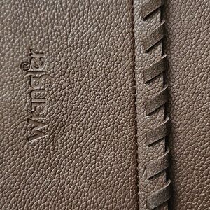 This is a stylish and functional set from Wrangler, perfect for everyday use. The set includes a crossbody bag and a matching smaller pouch, both in a rich brown color.