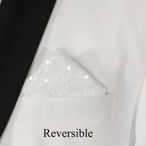 Men's Sequin Pre-Folded Pointed Pocket Square Insert - White