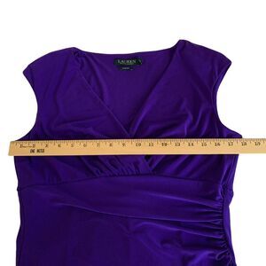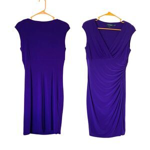 Lauren Ralph Lauren Dress Size 10 Purple Faux Wrap Ruched Cap Sleeve V Neck