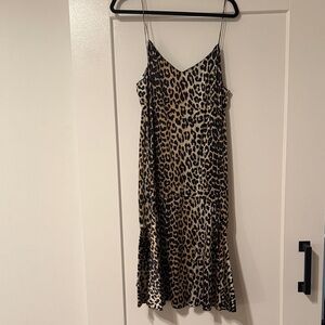 Stylish leopard silk Ganni print midi dress. Features thin straps and a flowing silhouette. Perfect for any occasion. Worn twice. In perfect condition and very on trend.