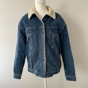 Aritzia Denim Forum The Ella Sherpa Lined Denim Jacket Dark Wash Size Large
