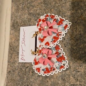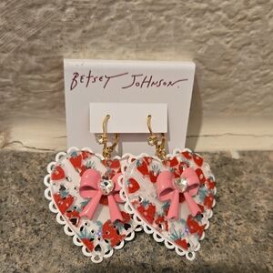 Betsey Johnson Floral Heart Earrings with Pink Bow New